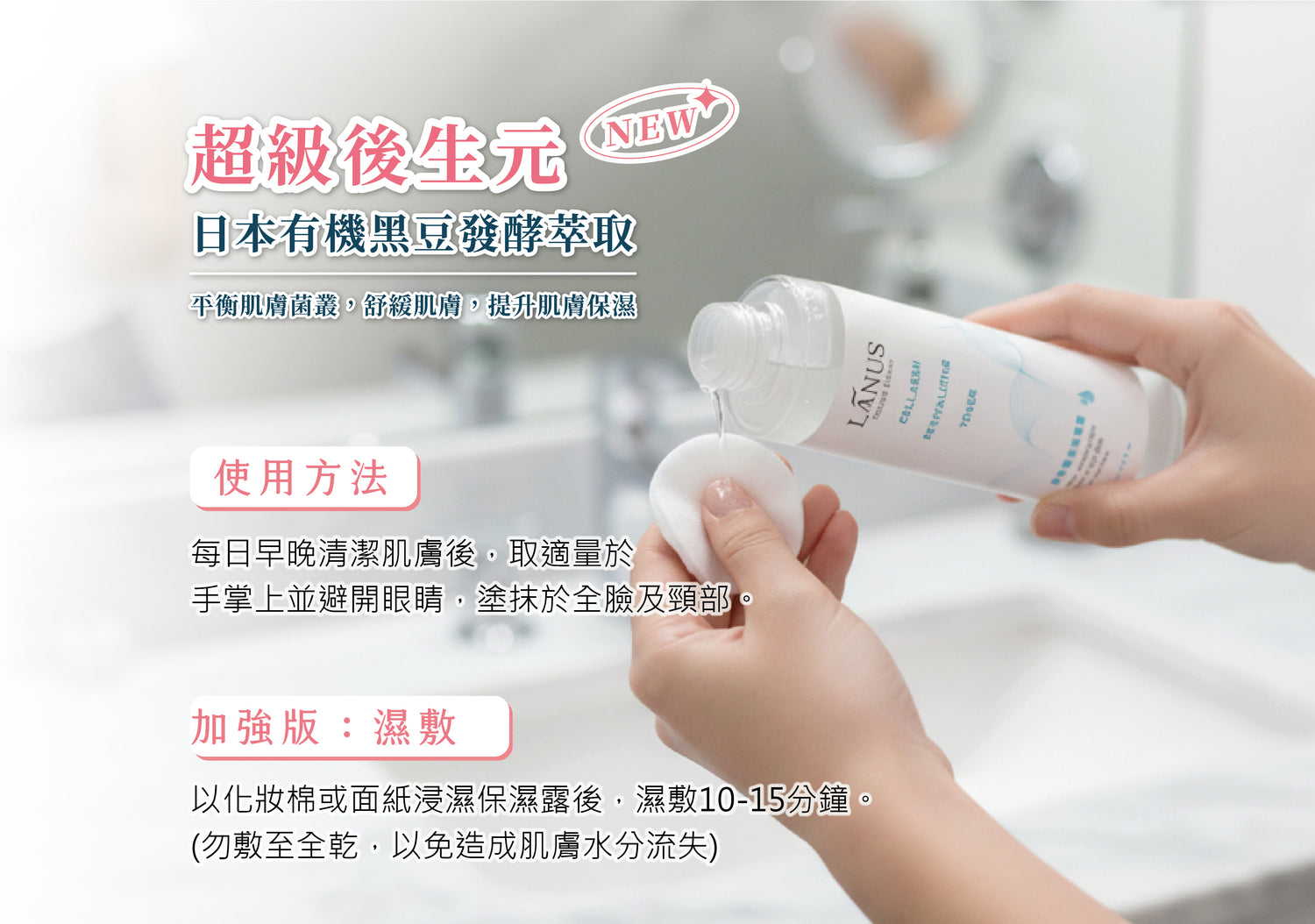 After cleansing in the morning and evening, take an appropriate amount onto your palm or a cotton pad and gently pat over the face and neck until fully absorbed. Follow with serum and cream to enhance moisturizing and repairing effects.