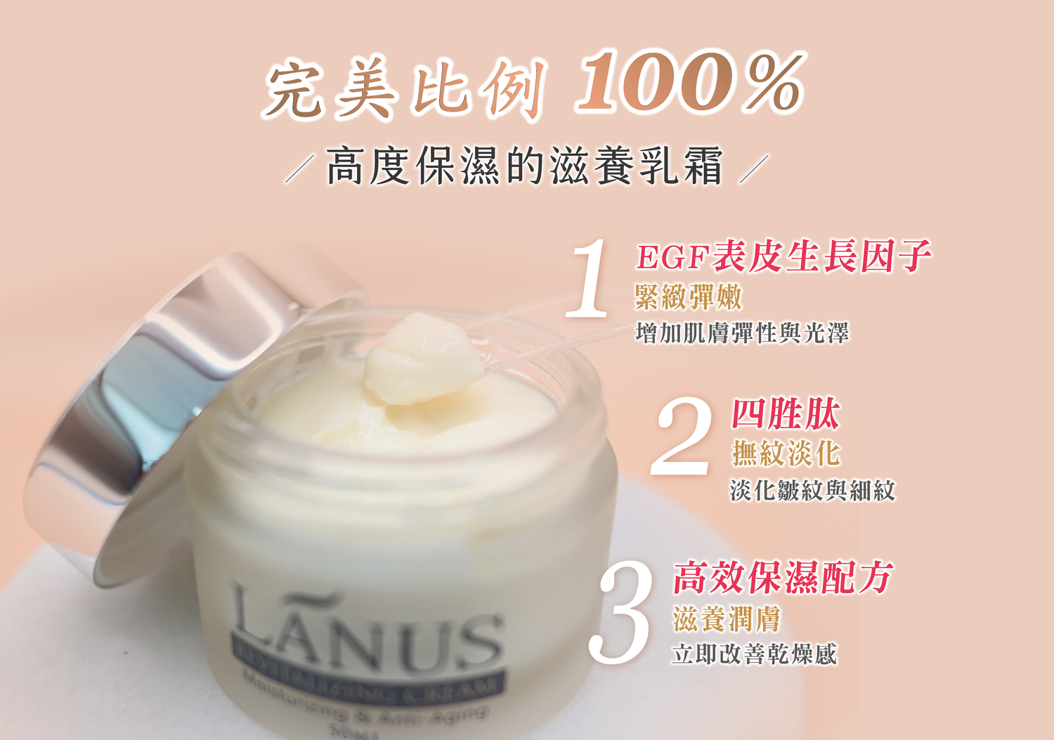蘊含被譽為「美麗因子」的EGF表皮生長因子,有效幫助延緩肌膚老化,維持明亮、有光澤的膚感。特別添加四肽成分,全面減少皺紋與細紋,使肌膚更顯緊緻彈性。成分天然,極易吸收,喚醒您的青春活力!